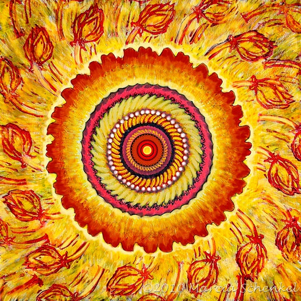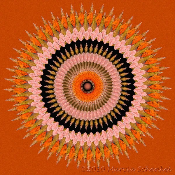 I create these mandalas in a couple of computer programs. I use the highest quality archival inks, paper and materials. The manufacturer rates these materials to last without noticeable fading or breakdown for 75 - 100 years. Prints on paper and on canvas are available in sizes ranging from 10” sq to 16" sq. Please contact me for more information. If you are in the Seattle area we can arrange for a viewing of prints on paper and stretched canvas in my studio. Also check out New Events.